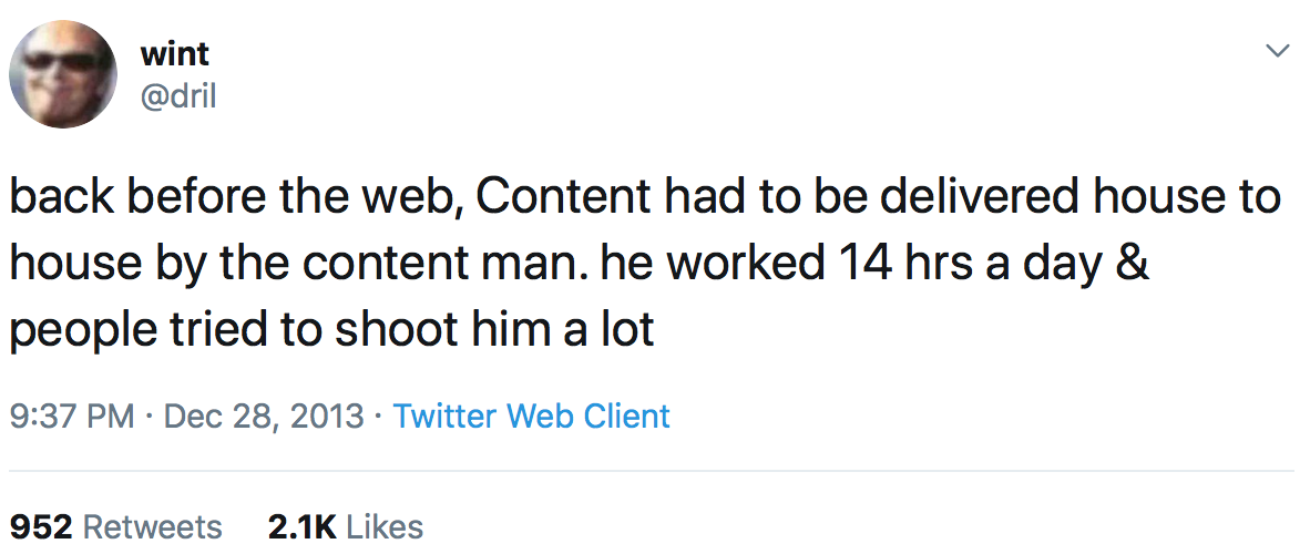This one goes out to the content man.
